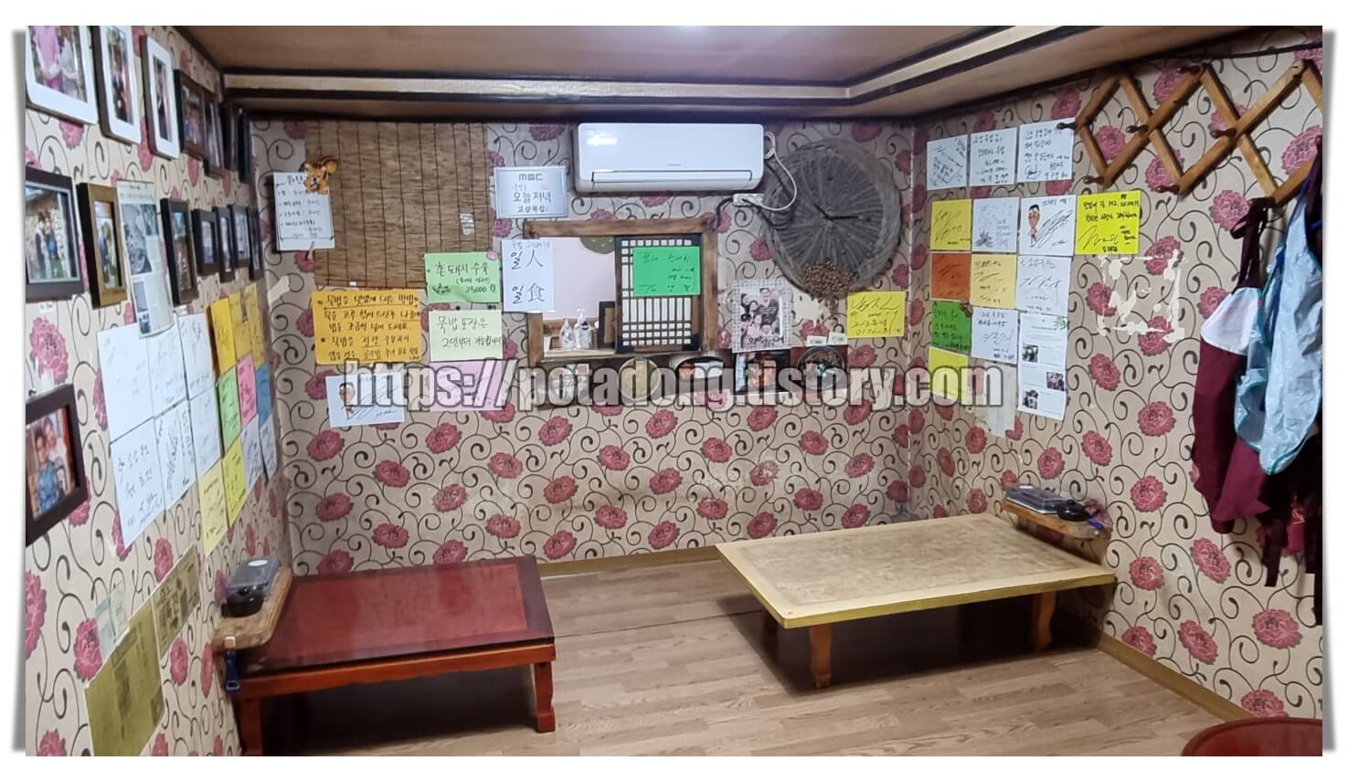 ▶ 실내로 들어가자 마자 보이는 가마솥에 끓이고 있는 냄비에 묵이 가득했습니다. 묵이 들어 있는 모습은 급하게 들어가느라 아쉽게도 찍지 못했습니다. 벽엔 수많은 연예인들과 사인들이 즐비하였는데 간접적으로 맛집이긴 하구나 하는 느낌을 주었습니다.