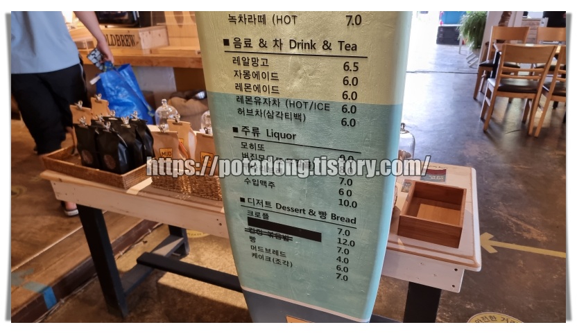 ▶ 커피와 음료에 대한 메뉴판이 서핑보드로 되어 있는 것도 매우 특이하였습니다. 아무래도 음료만 마시는 공간이 아니라 가격이 저렴하지는 않지만 자리값이라고 생각하고 마셔야 마음이 편안합니다. 다시한번 말씀드리지만 반드시 주차권을 요구하셔야 합니다.
