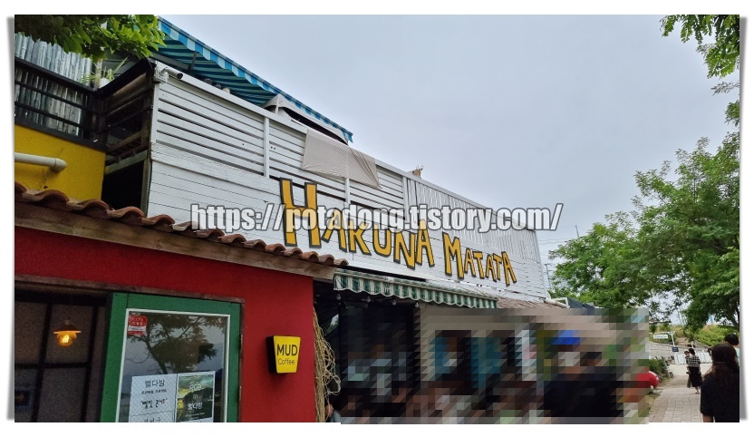 ▶ 뻘다방 MUD 커피 입구에서부터의 모습입니다. 과거에도 한번 와봤었는데 뭔지 모르게 좀 더 이국적인 느낌으로 바뀐듯합니다. 그래서인지 일요일 낮을 즐기는 이용객들이 매우 많았습니다.