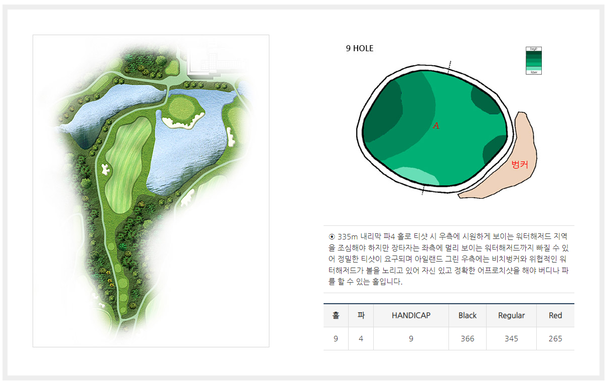 ▶ 코스는 Birch Hill, Oak Hill 코스의 18홀로 구성되어 있습니다. 저희는 Birch Hill 코스(10홀)부터 시작하여 순서에 참고하시기 바랍니다.