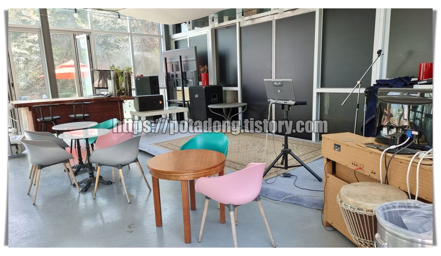 ▶ 커피를 주문하고 옆에 있던 비닐하우 공간에 들어가서 편하게 커피를 먹었습니다. 커피를 먹는 공간은 다소 관리가 안돼 보이기도 했지만 여유롭게 먹을 수 있었던 공간이었던 것 같습니다.