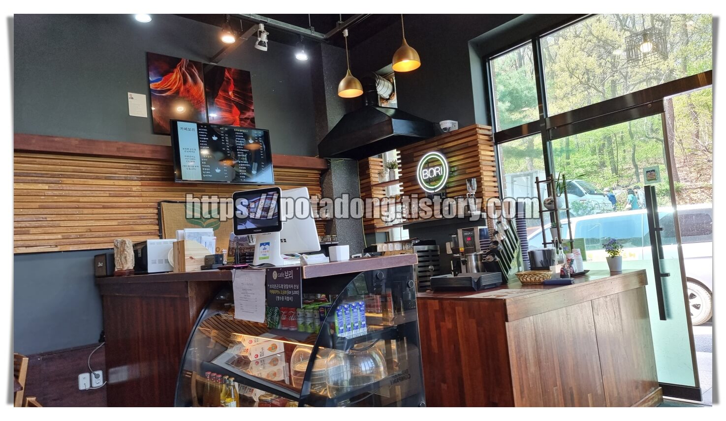 ▶ 실내공간은 커피숍과 식당이 함께 있었는데 식당에는 단체석 손님이 많아 사진을 찍기 애매하였습니다. 저희는 커피숍 자리 카페 보리의 테이블에 앉아서 자리를 잡았습니다.