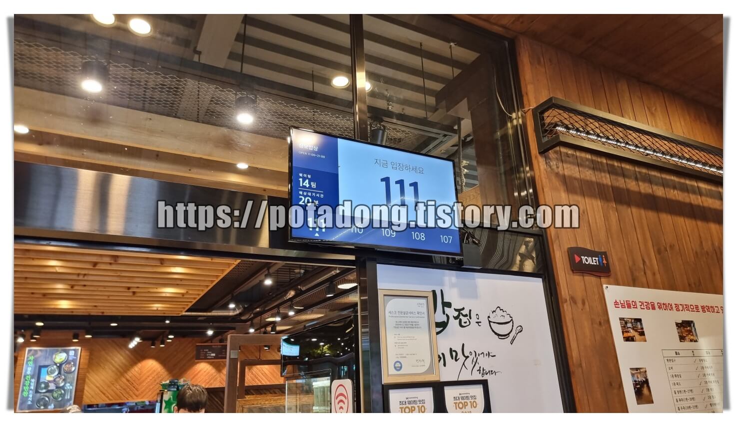 ▶ 맛집임을 인증하는 대기 전광판입니다. 저희는 약 20여 팀을 앞에 두고 웨이팅 하였습니다. 점심식사가 끝나가는 시간에 방문하여 오래 기다리지 않고 들어갈 수 있었습니다.