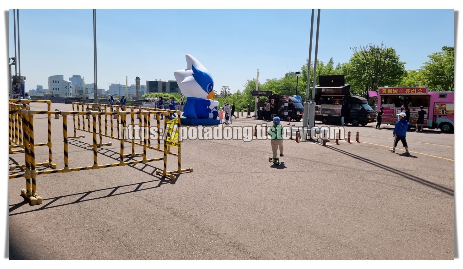 ▶ 경기장 좌석이 E석 1층이었습니다. 아이의 킥보드를 태우면서 걸어가니 금방 갈 수 있었습니다.