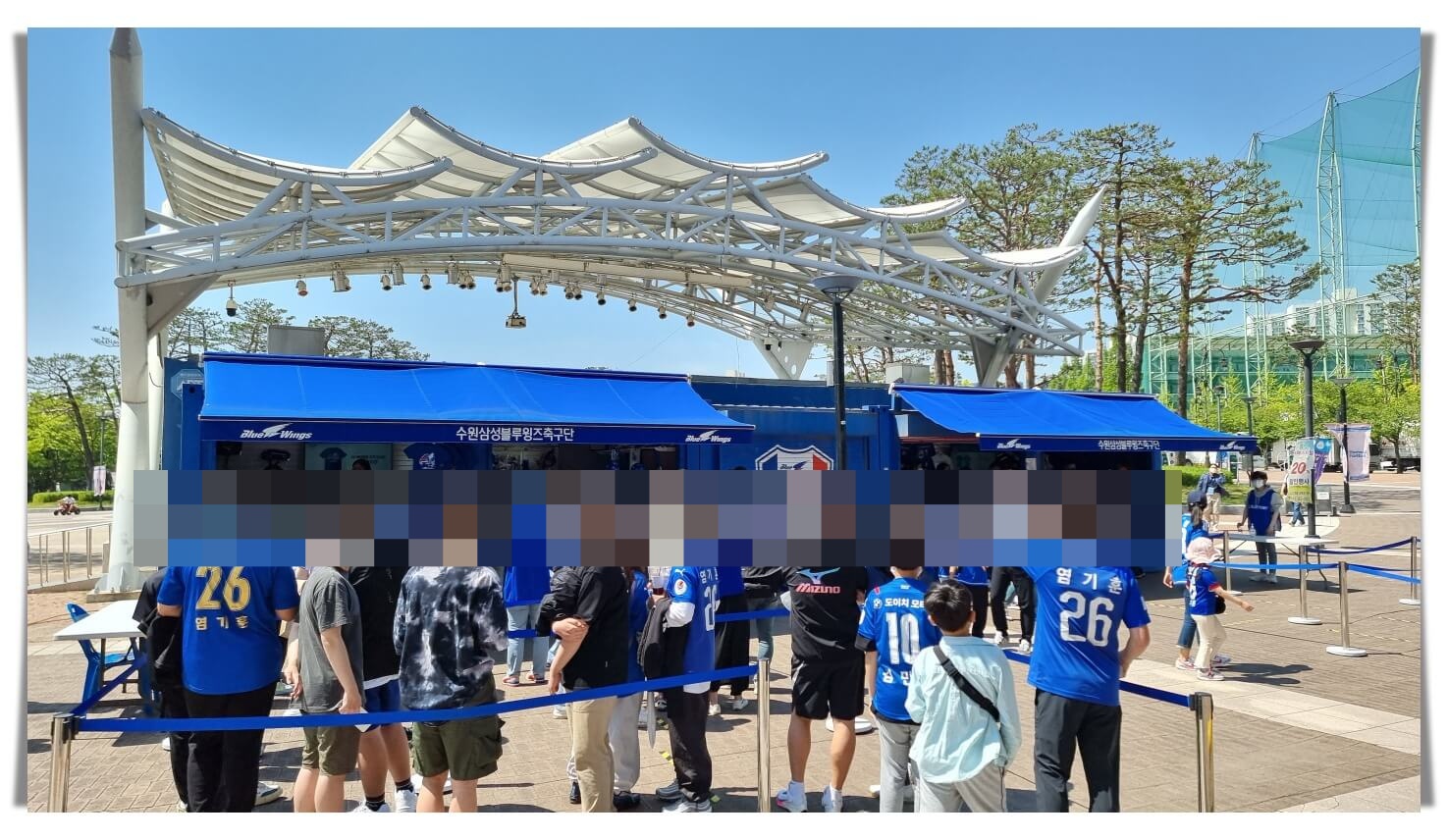 ▶ 기념품 가게 앞에는 많은 수원 삼성 홈팬들이 기념품을 사는 모습을 보았습니다.