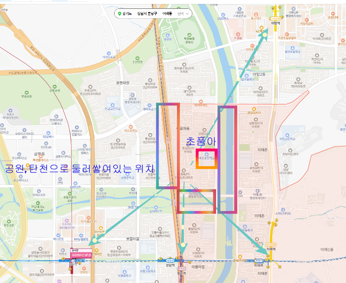 무엇보다 중요한 건 이게 차도랑 완전히 분리된 녹지 공간이라는 점임. 애들 데리고 다닐 때도 안심되고, 아침저녁으로 탄천 산책로랑 연계해서 운동 코스로도 딱임. 진짜 판교랑 가까운데도 불구하고 조용하게 살 수 있는 입지라는 게 이 단지의 핵심 장점 중 하나임.