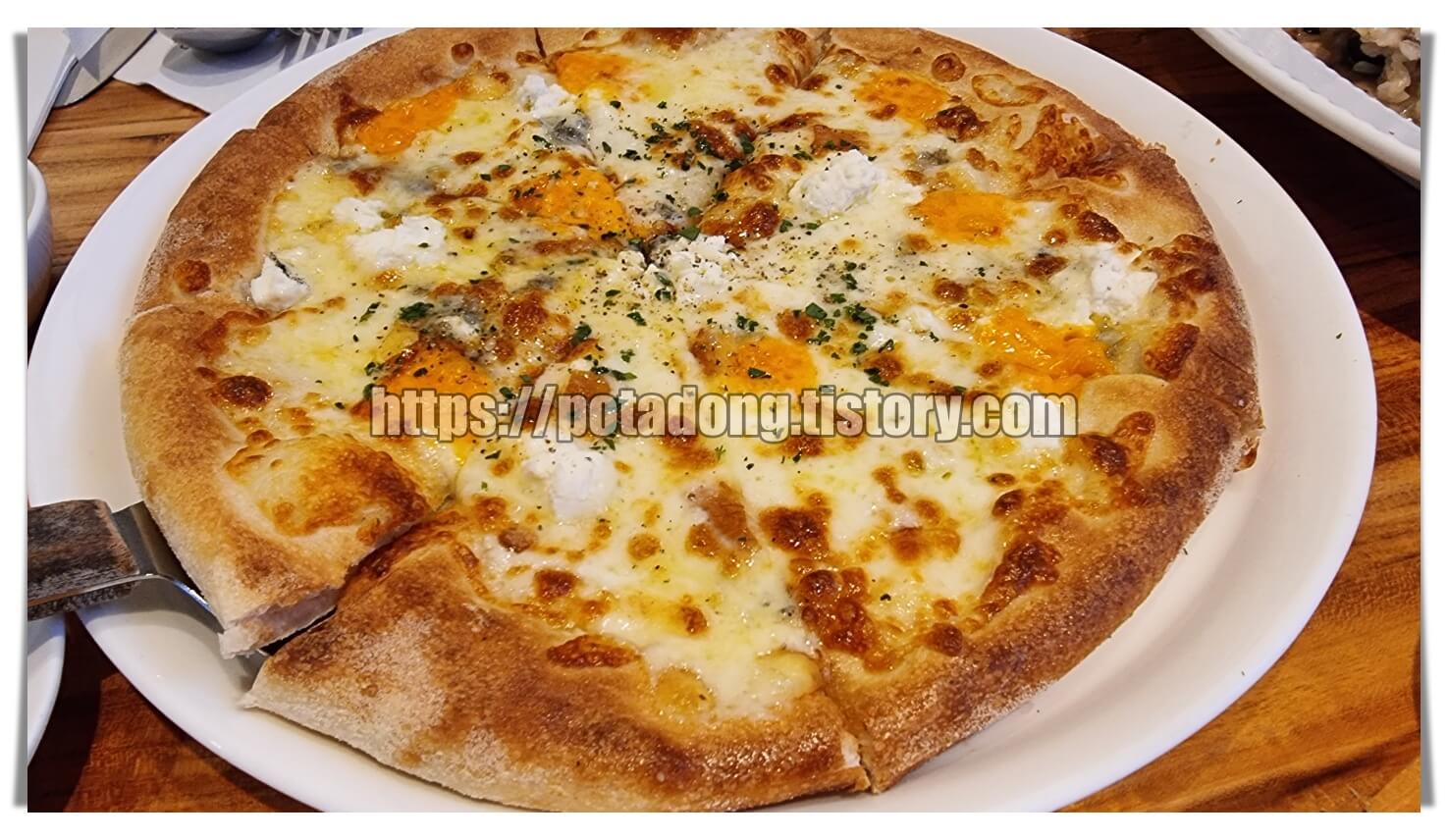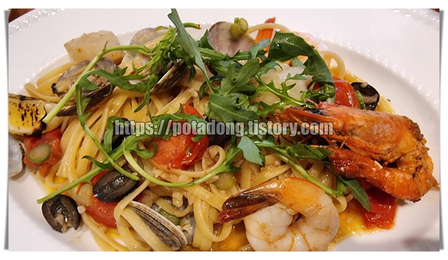 ▶ 식전 빵과 꿀에 찍어먹는 콰트로 포르마지오 피자, 버섯 크림 리소토, 해산물 오일 파스타를 주문하였는데 해산물 오일 파스타는 약간 매콤하여 아이가 먹기에는 좀 힘들었던 메뉴 같습니다. 하지만 성인들이 먹기에는 당연히 맛있었습니다.