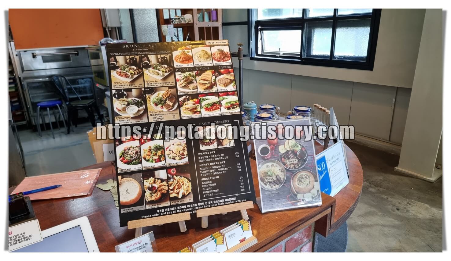 ▶ 1층에서 2층으로 올라오면 메뉴를 주문할 수 있는 카운터가 위치하여 있습니다. 메뉴는 매우 다양하였습니다. 저는 음료를 마시러 방문하였는데 다양한 브런치 세트도 판매하고 있었습니다. 다음엔 브런치를 먹으러 방문을 해야 겠다는 생각이 들었습니다.