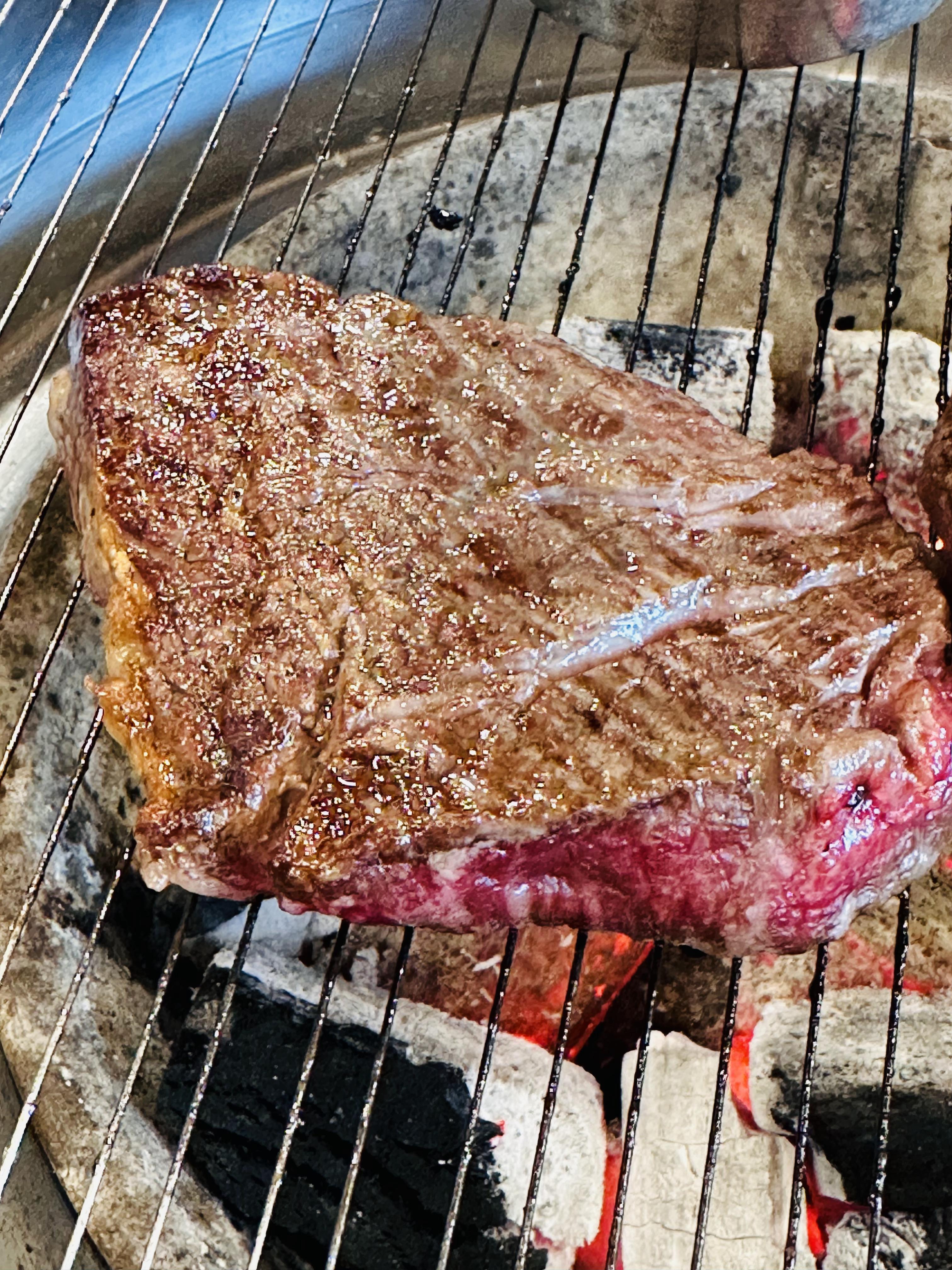 ☞ 고기를 앞뒤로 자주 뒤집어줘야 육즙이 안빠지고 맛있는 고기를 먹을 수 있다고 설명해주셔서 자주 뒤집었습니다. 육회도 즐기는데 아이를 위해서 특별히 웰돈과 레어로 나눠서 구웠는데 아이도 어른도 잘먹었습니다.