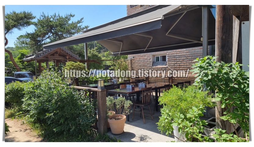▶ 주차공간에 주차를 하고 나면 바로 백운재 건물이 보입니다. 기와로된 건물이 매우 웅장하고 모습 자체로 한식 맛집의 모습을 보여주는 것 같습니다. 주말 오후 2시 30분쯤에 도착하였는데도 앞에 대기하시는 분들이 매우 많았습니다. 저희도 도착하였는데 아이가 잠들어있어 그늘이 있는 대기석에 앉아서 웨이팅을 하였습니다.