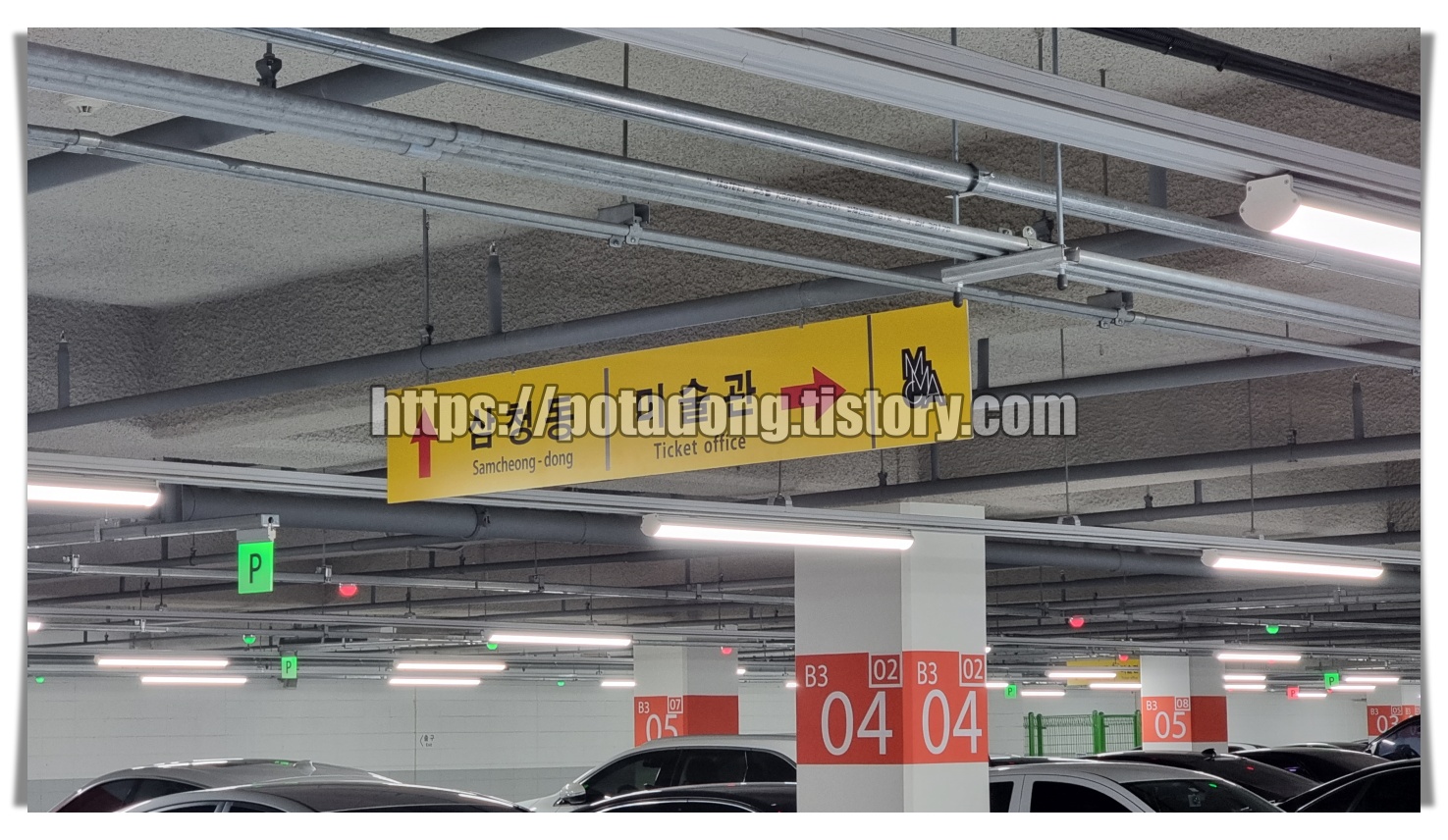 ▶ 주차는 경복궁 주차장이 청와대 관람을 위한 주차장으로 안내되어 있다고 들었습니다. 사실 경복궁 바로 위에 청와대가 위치하여있어 대부분이 경복궁 주차장을 이용할 것으로 생각했습니다. 개방 둘째날 이니 만큼 매우 붐빌 것으로 생각되어 다른 여러 곳을 찾아봤는데 시간당 3천 원에 가장 안 붐빌 것 같은 국립현대미술관을 목표지로 설정하고 (수요일 야간 개장일) 이동하였습니다. 주차장 입구는 아래 사진과 같으며 상당히 여유로운 주차를 할 수 있었습니다. 국립현대미술관은 6시 마감이지만 수요일은 야간개장이 있어 9시30분까지 운영합니다. 이밖에도 정독도서관 주차장, 신교 공영주차장 등이 주변에 있으니 참고하시기 바랍니다.