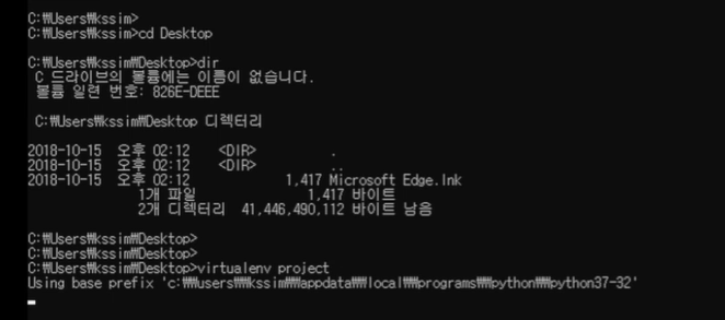 가상작업환경 활성화를 위해 Scripts\activate