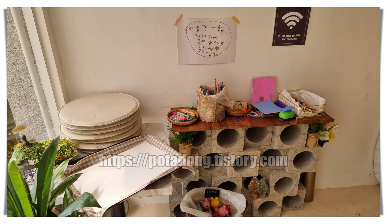 ▶ 아이들 비눗방울과 색연필, 색종이 등 다양한 놀잇감 비치해 놓으셨습니다.