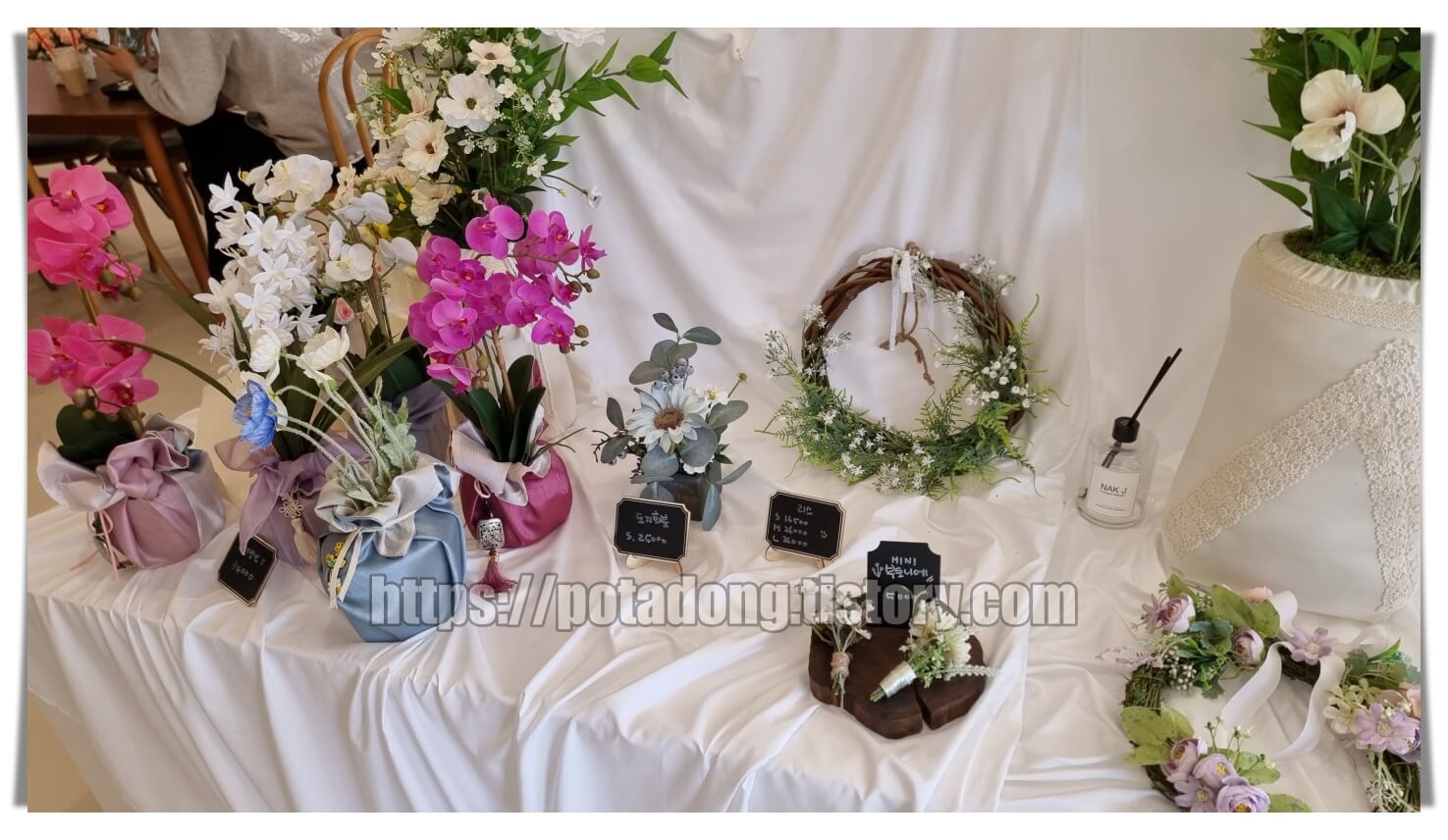 ▶한 가운데에 위치한 다양한 플라워 장식들. 판매하는 꽃들답게 가격표도 붙어있습니다.