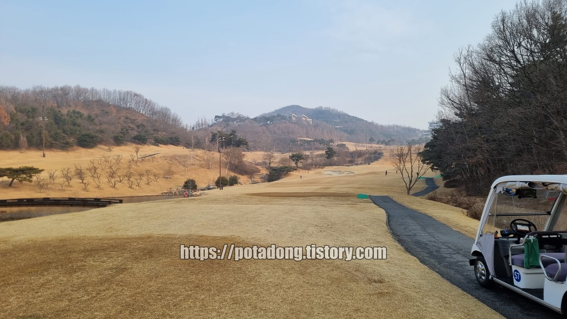 ▶ 아직 겨울이라 잔디가 푸르지 못해 누런 잔디이지만 영상으로 풀린 날씨로 필드, 그린이 그렇게 딱딱하지 않아 코스를 즐기는 데에는 큰 무리가 없었다. 전반적으로 레이크 코스는 넓고 긴 페어웨이, 락 코스는 짧지만 레이크 코스보단 약간 좁은 페어웨이.